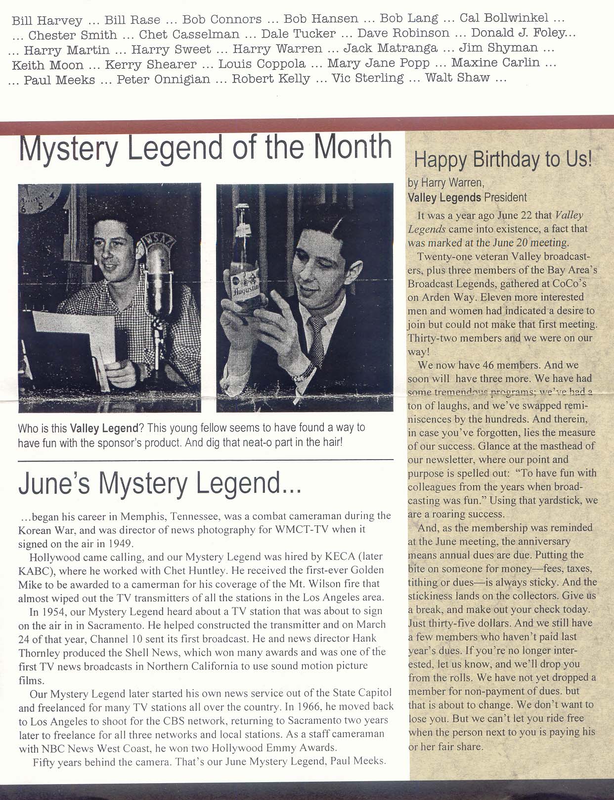 | HOME A/V Bios & History Contact Us Links Meetings/Events Membership Info JOIN! Newsletters Signed-Off |