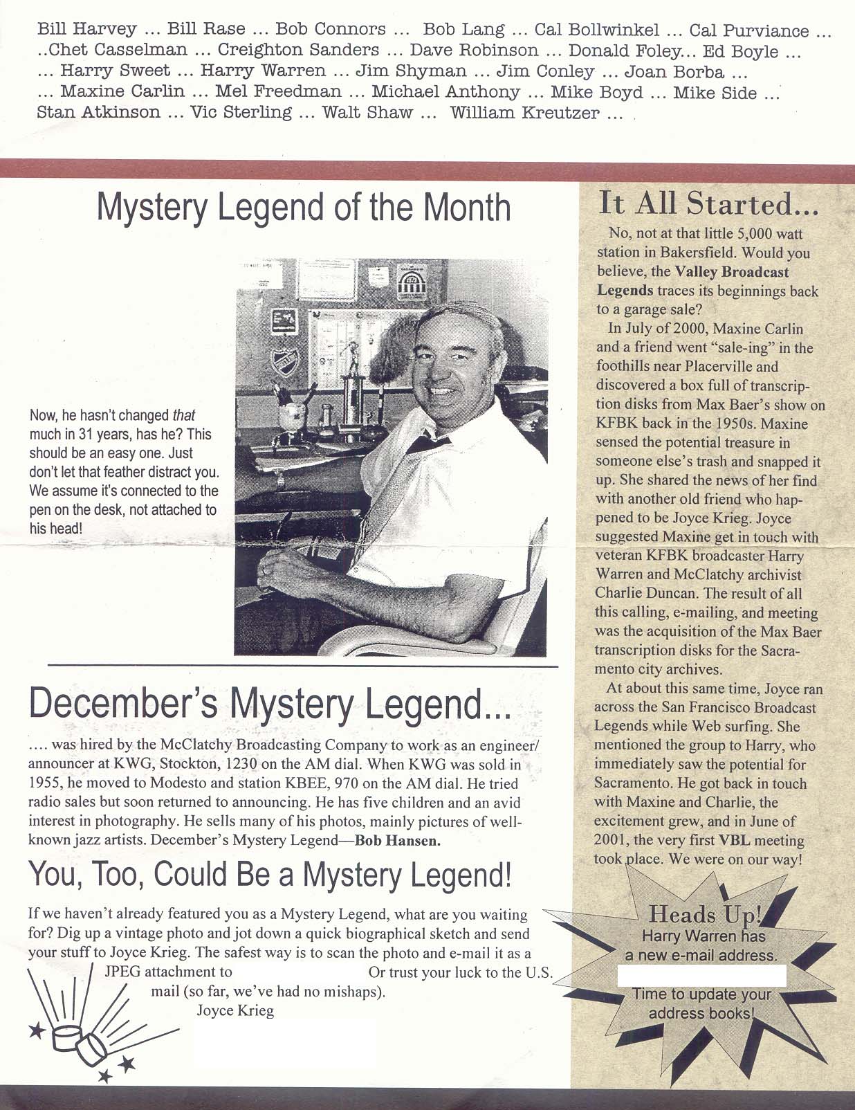 | HOME A/V Bios & History Contact Us Links Meetings/Events Membership Info JOIN! Newsletters Signed-Off |